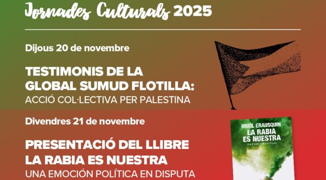 Des de CNT València organitzem una nova edició de les nostres Jornades Culturals amb l’objectiu de convidar a la reflexió, la solidaritat i l’acció col·lectiva. Enguany, les jornades posen el focus en la resistència del poble palestí i en la necessitat de repensar les emocions polítiques que mouen la transformació social.