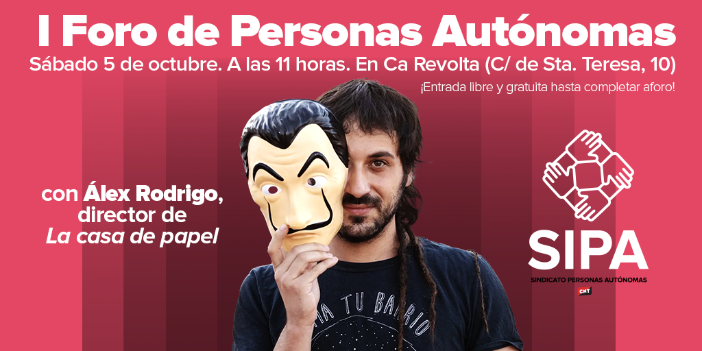 Generar un espacio de encuentro y de reflexión para quienes trabajan por cuenta propia en diferentes sectores. Este es el objetivo del Foro de Personas Autónomas, una iniciativa organizada desde SIPA que celebrará su primera edición el próximo sábado 5 de octubre, a las 11 horas, en Ca Revolta (Calle Santa Teresa, 10, València), con entrada libre y gratuita hasta completar aforo.